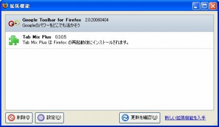 でも既定では、Firefox が定期的に更新を確認し、 インストールされた拡張機能の新しいバージョンが利用可能な場合は それを通知してくれるからね